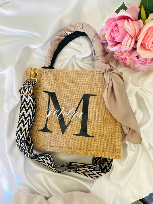 SAC EN JUTE "LE CUSTOMIZER CHIC " AVEC SANGLE & FOULARD